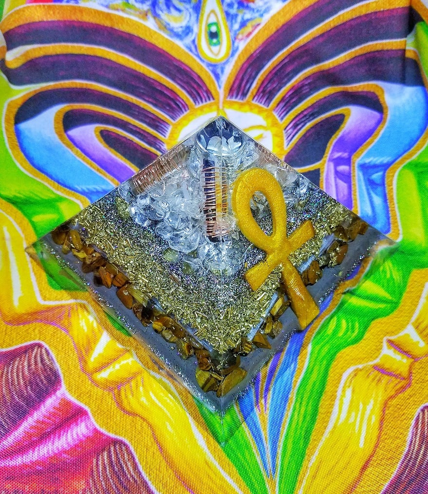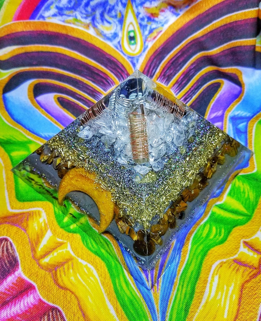Large Pyramid with 4 crystals (picked by you, limited to inventory; choose these in the "Crystals" section) and 5 copper wrapped clear quartz points