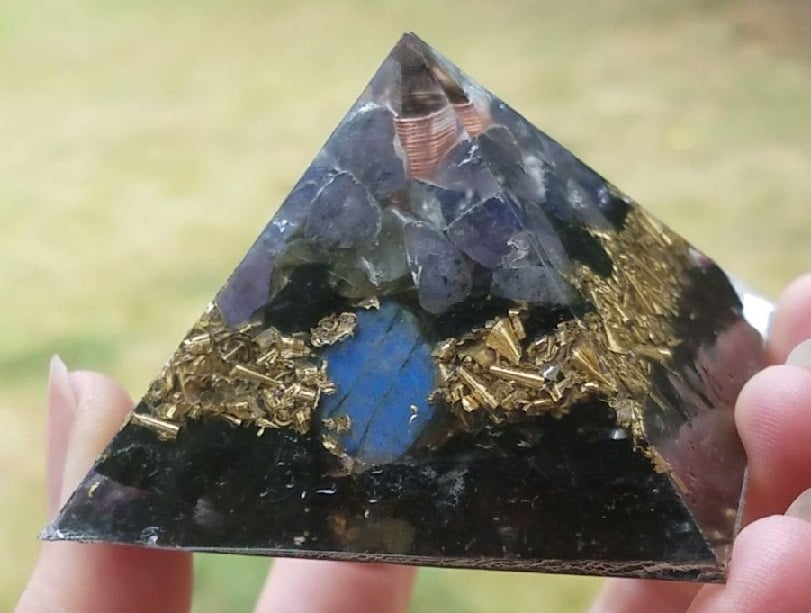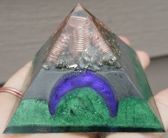 Small Phi Ratio Pyramid with 2 crystals (picked by you, limited to inventory; choose these in the "Crystals" section) and 1-5 copper wrapped clear quartz points