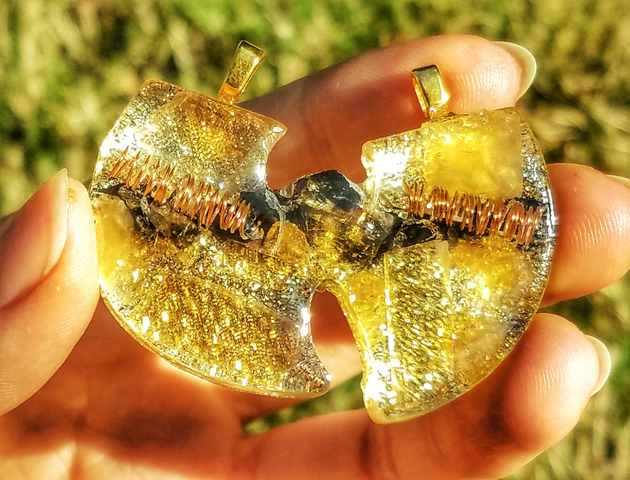 contains: ~2 copper wrapped clear quartz points ~honey calcite ~shungite ~glitter